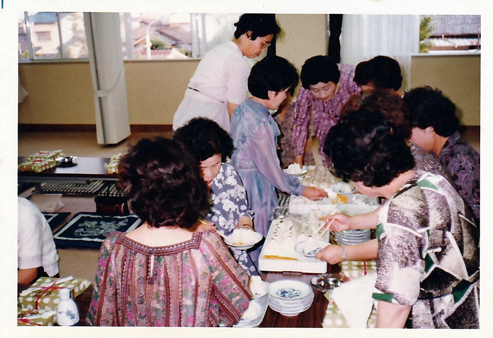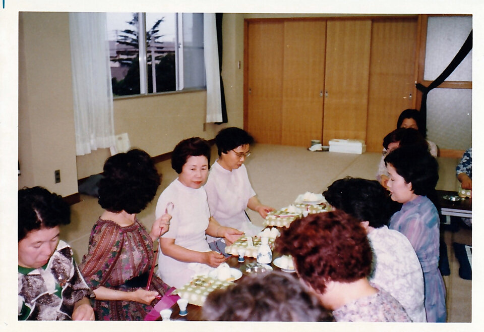 公民館イベントのあとの親睦会でしょうか。女性陣の賑やかな様子の写真です。
