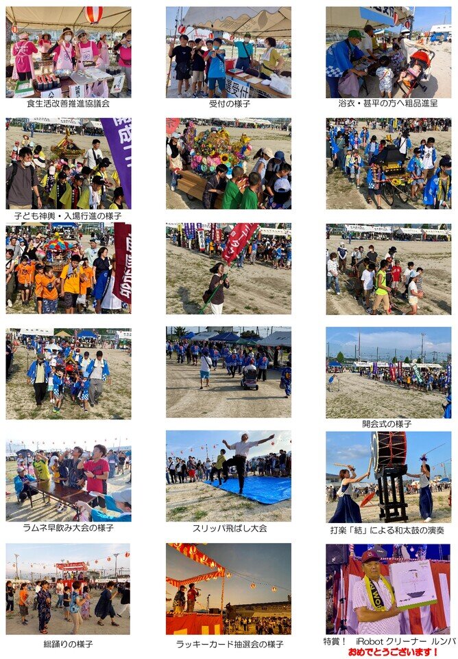 イベントでは、子ども会による「ラムネ早のみ大会」、スポーツ協会による「スリッパ飛ばし大会」が行われ、大変賑わいました。