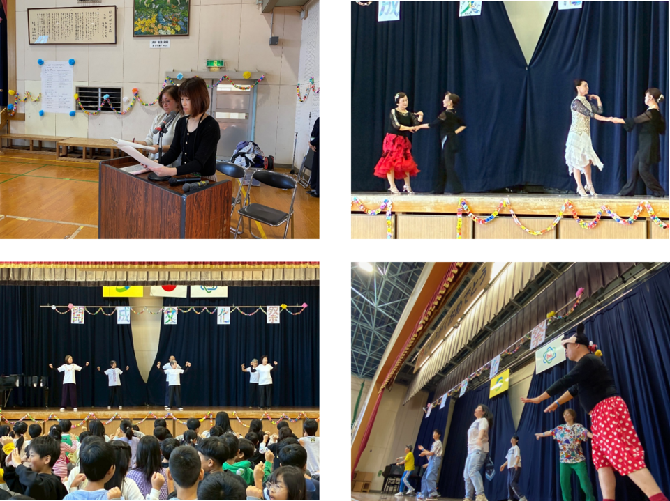 ステージ発表では、開成公民館で活動されている自主サークルと、小学校児童が互いにダンスや合奏、群読などを発表し合い、大いに盛り上がりました。また、公民館自主サークル太極拳の発表時には、 会場のみんなで行うなど、感動的な場面もありました。