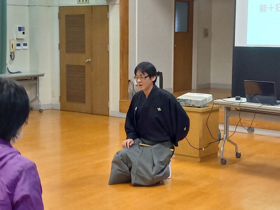 11月17日(月)、日本伝統文化の一つである能楽に親しんでもらおうと、「能楽体験」が、子ども部会と文化・スポーツ部会の共催で開催されました。