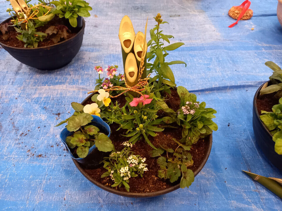講義の後は、学んだことを活かして、寄植えの実習を行いました。ここでは各々思い思いに花苗を選ばれていました。同じような花苗を選んでも、置き方などによって印象が変わるのが、そばで見ていて大変興味深かったです。