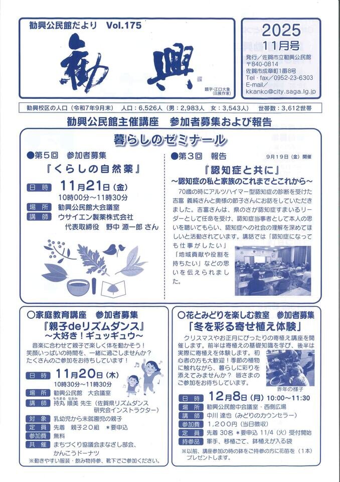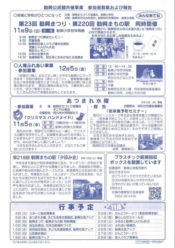 勧興公民館だより11月号を発行しました。