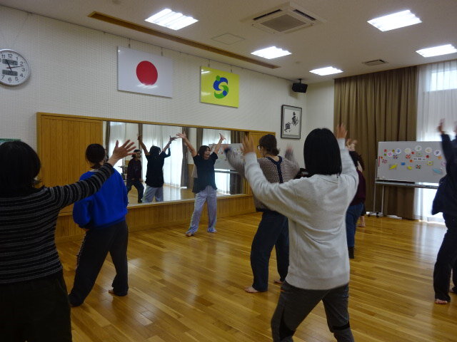 11月20日(木)県リズムダンス研究会インストラクター持丸順子さんを講師に迎え、子育てサロン「かんこうドーナツ」との共催で、「親子deリズムダンス」を開催しました。