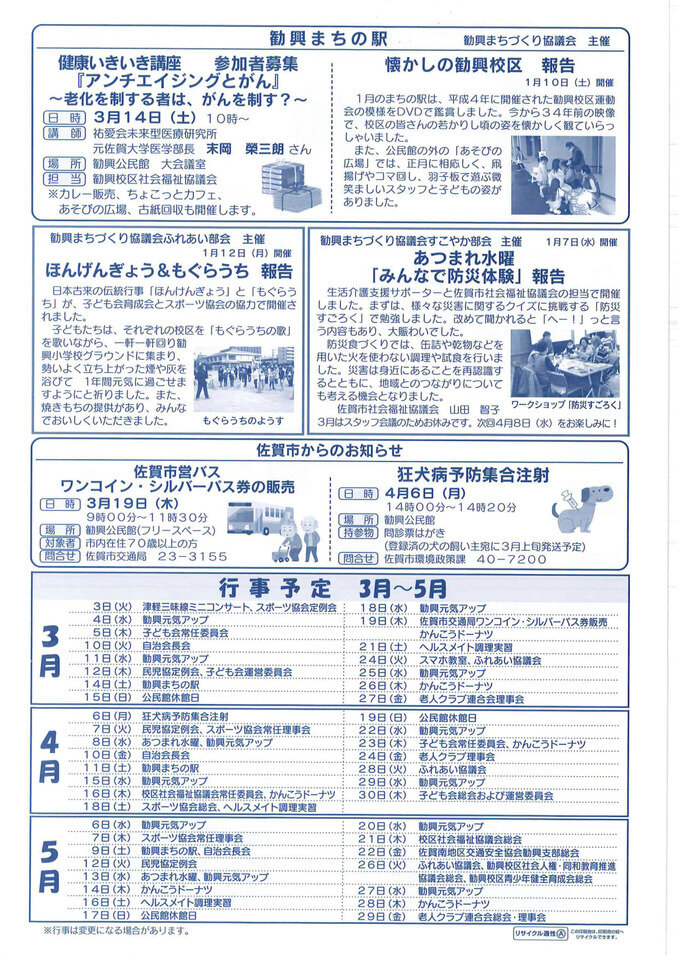 勧興公民館だより3月号を発行しました。