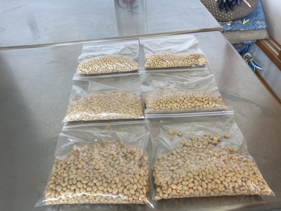 冷えた大豆を普通はミンサーという大豆をミンチ状にする機会にかけるのですが、今回は子どもたちとママさんたちに、ジプロックに入れてつぶしてもらいました。