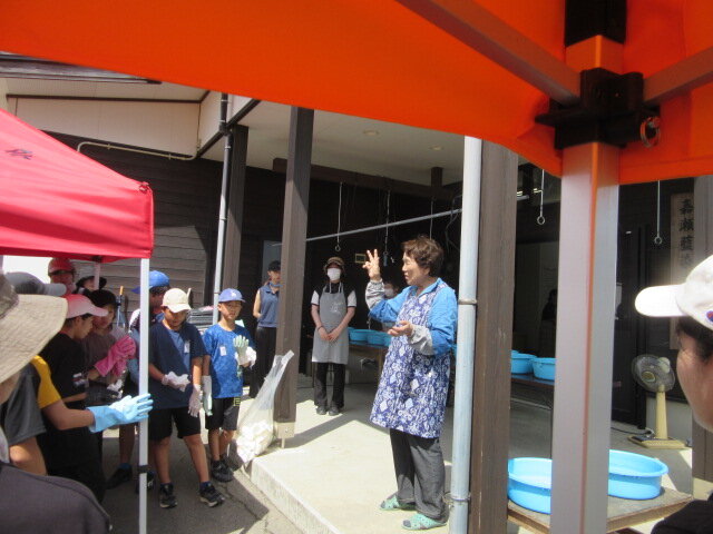 9月5日(金)嘉瀬公民館の藍染工房で嘉瀬小学校6年生が、親子活動で藍の生葉染体験をしました。指導してくださったのは「藍・愛をつむぐ会」の皆さんです。