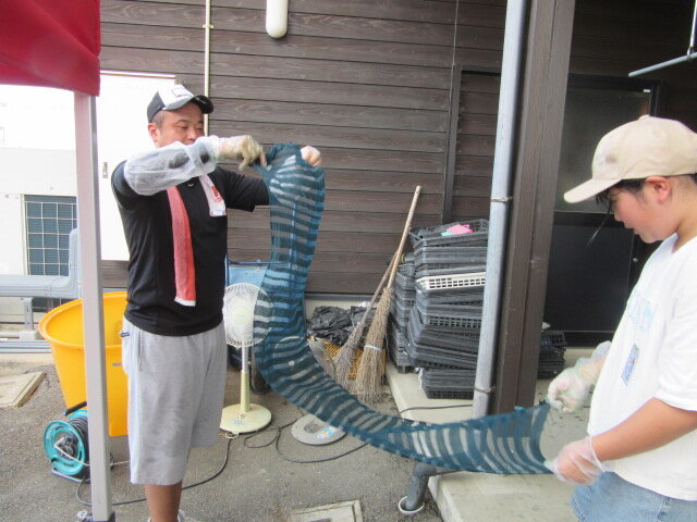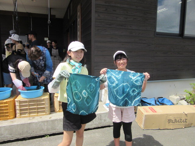 「染めるのは大変だったけど、きれいな藍色に染まって嬉しかった」「親も一緒に参加できいい機会になった、またやってみたい」など自分の作品に満足そうでした。