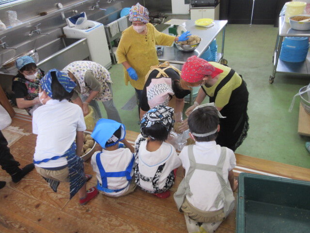 10月8日(水)蒲原さん、栗山さん(ふるさと先生嘉瀬会)に指導していただきながら、嘉瀬産大豆100%のみそ作り講座を開催しました。町内の保育園の園児6名も参加してくれ、大人の参加者と一緒にみそ作り体験をしました。皆さん、3ヶ月後の食べごろになるのが楽しみ〜と持ち帰られました。 第3回〜6回(11/26、12/17、1/28、2/18)は、まだ募集中ですので興味ある方は体験してみませんか。嘉瀬公民館(電話26-5208)までご連絡ください。