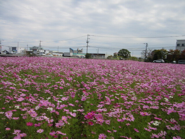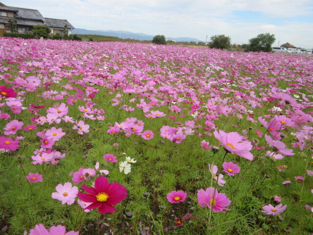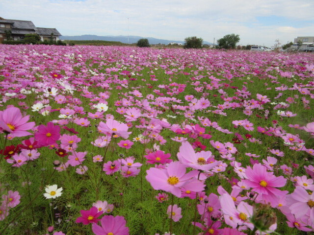 10数年前からご夫婦2人で育てられていて、秋の訪れを感じさせてくれます。今年は猛暑で例年より少し遅めの満開になりましたが、繊細で優雅なコスモスは秋の風景を彩ってくれています。