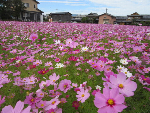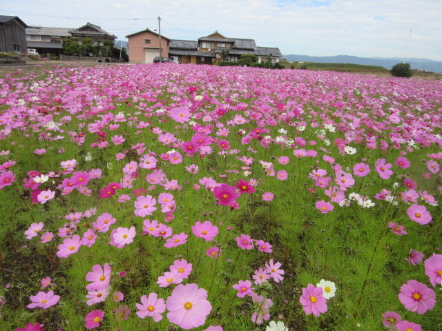 嘉瀬町の国道207号線沿いの宮副さん宅のコスモスが見頃になってます!