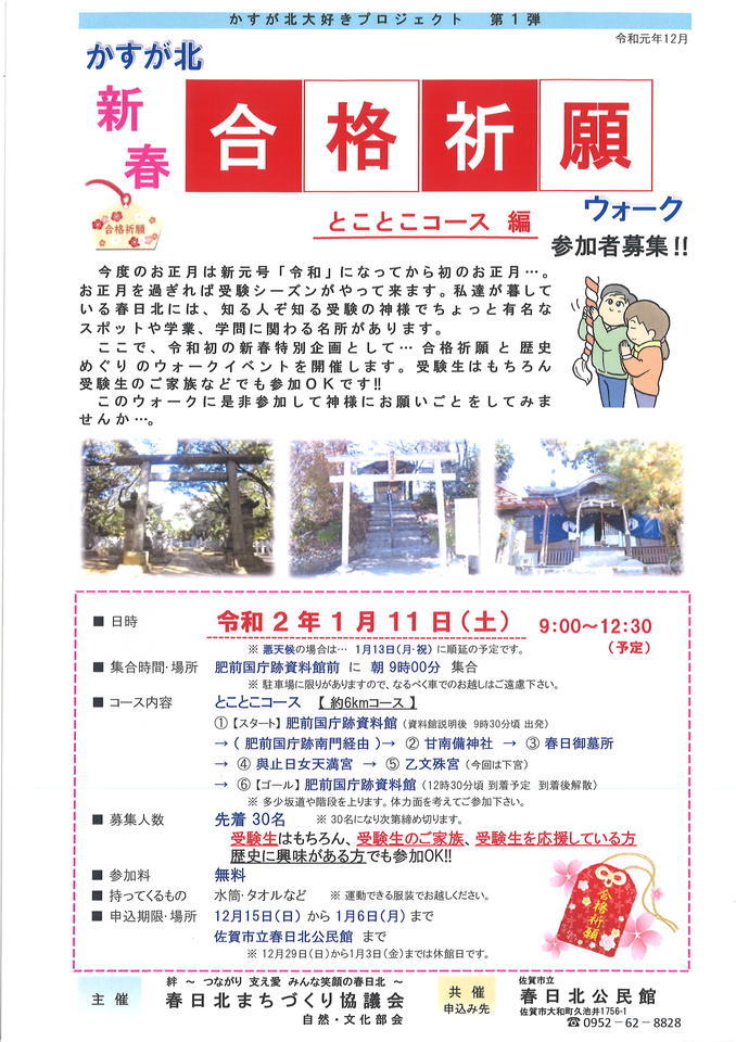 かすが北 新春合格祈願ウォーク参加者募集!!