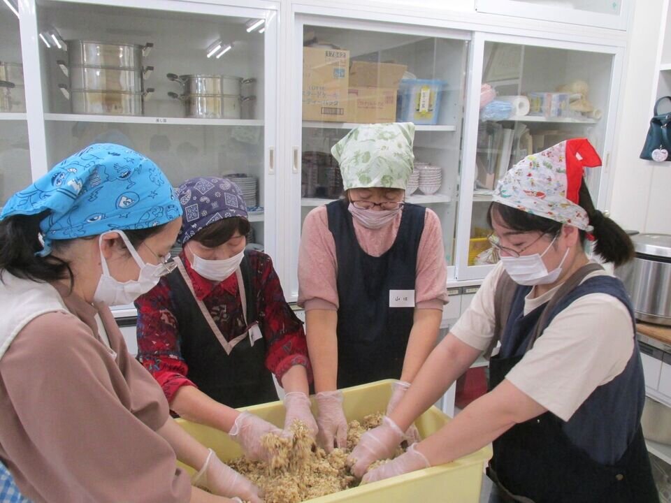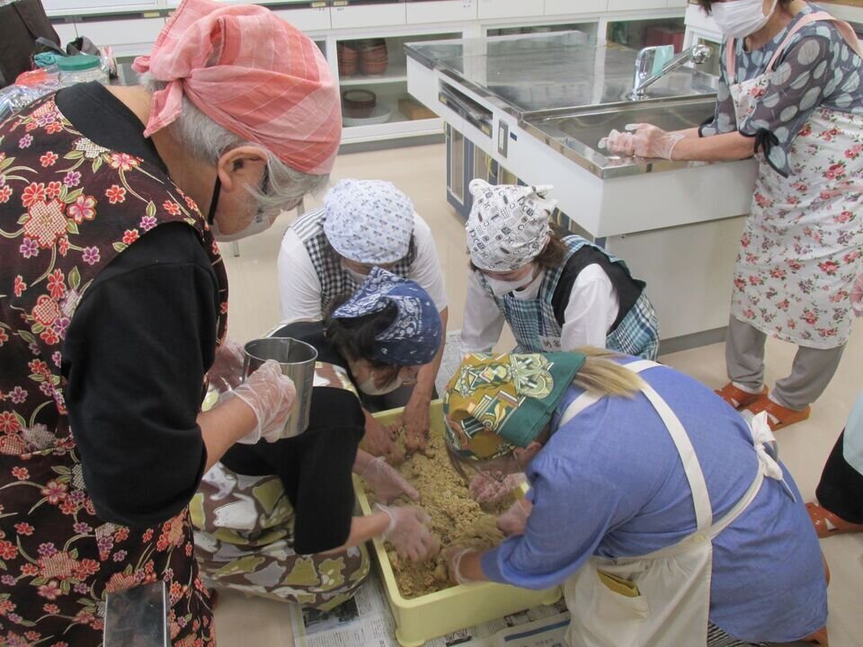 10月3日(金)、松梅のふるさと先生 小副川さんを講師に迎え、食育講座 第2回目 みそづくり教室を実施しました。人気講座につき、午前と午後の2枠を設定。14名ご参加いただきました。前日の午後に材料を搬入。