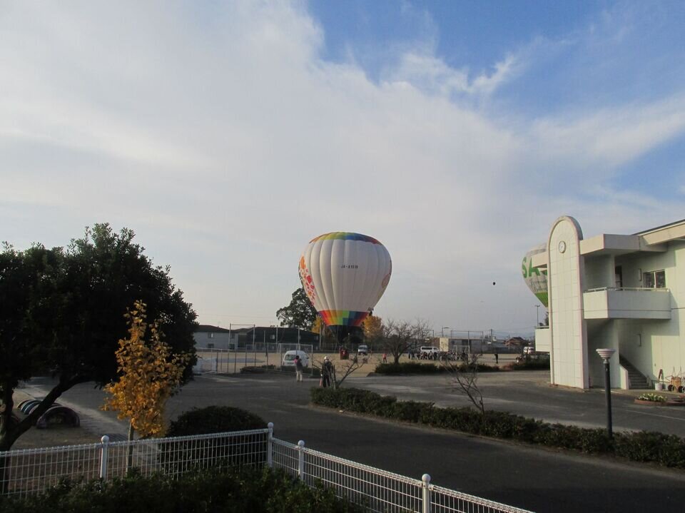 出勤すると、お隣の春日北小学校の校庭にバルーンが!
