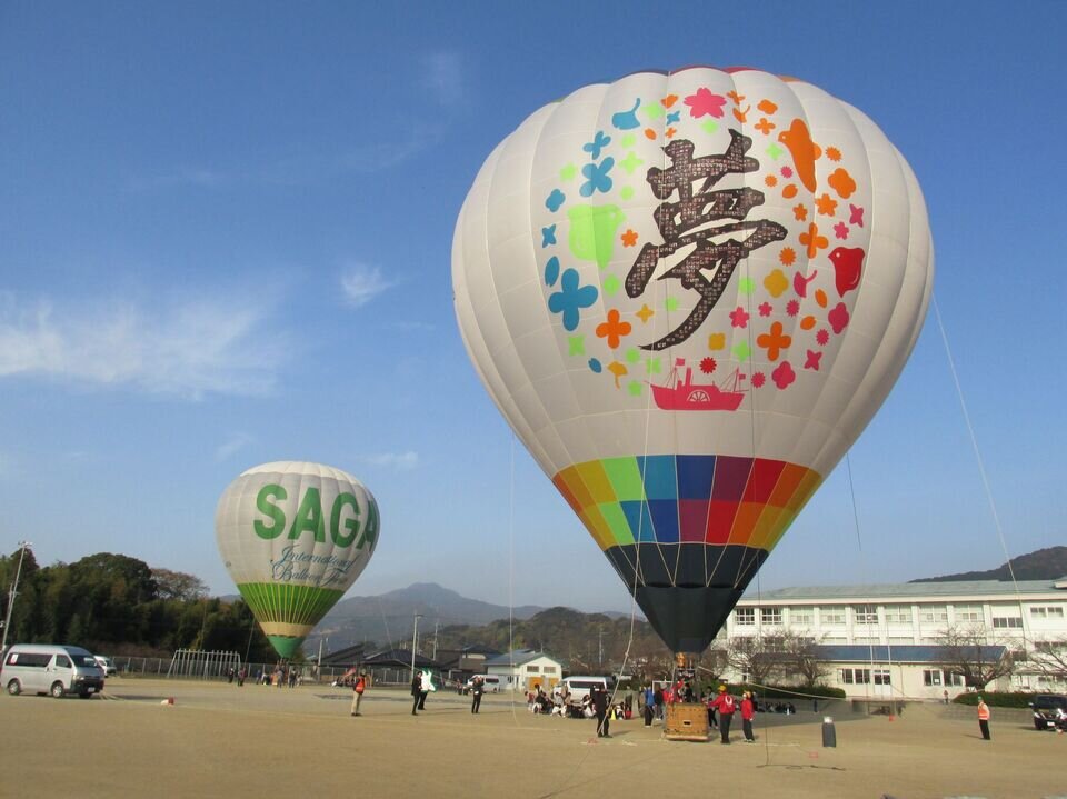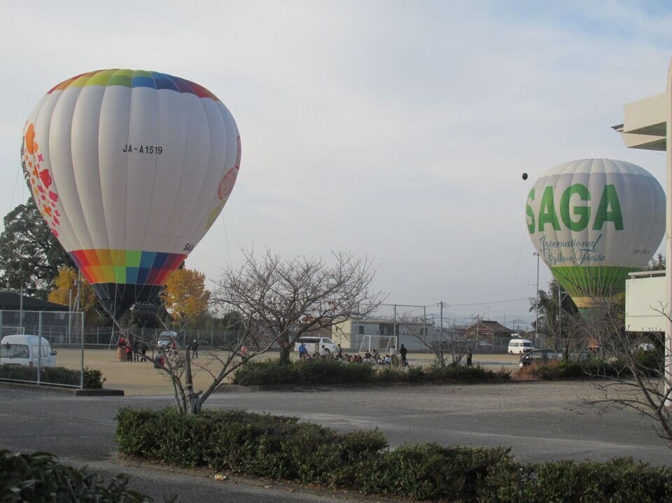 今日は、佐賀市観光振興課が取り組んでいる、新市誕生20周年記念小学校バルーン係留体験搭乗(空飛ぶ体験あたりまえ化計画)が春日北小学校で行われる日でした。1年生から6年生まで、全員がバルーンに乗ります。いいなあ。