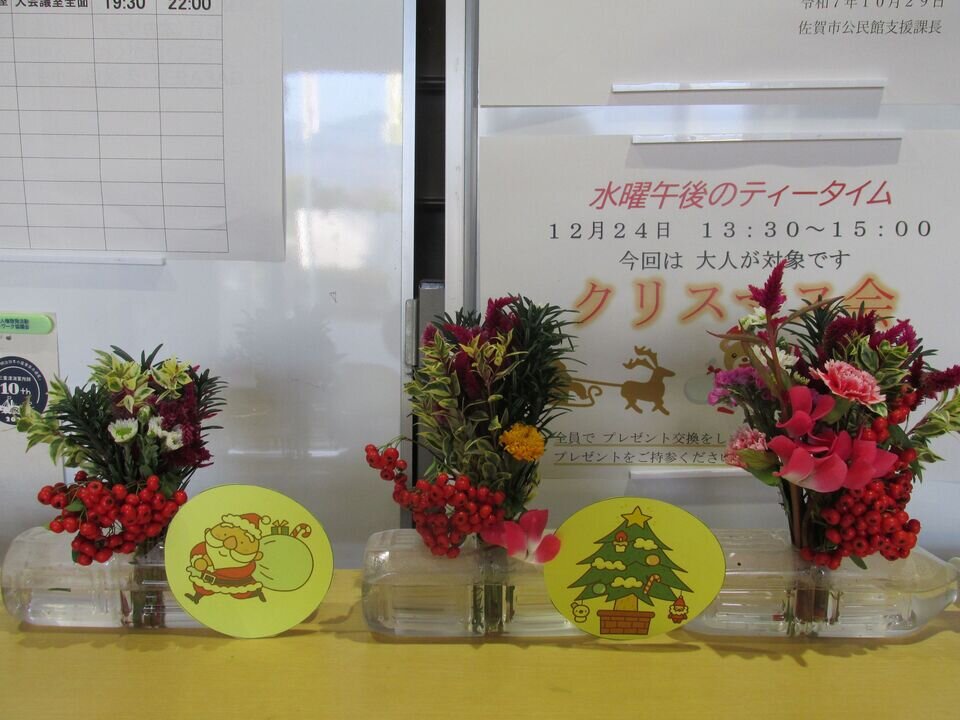 水曜午後のティータイム第4回クリスマス会は12月24日(水)13:30~15:00です。予約なしに参加できますが、プレゼント交換用がありますので、300円程度のクリスマスプレゼントをお忘れなく!
