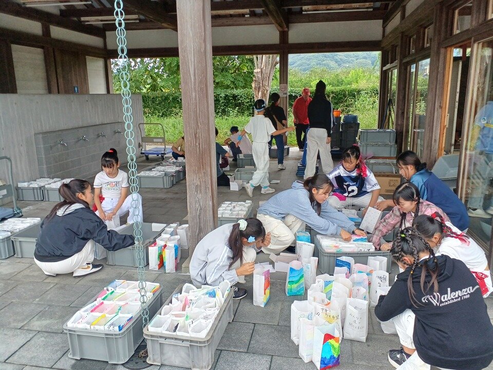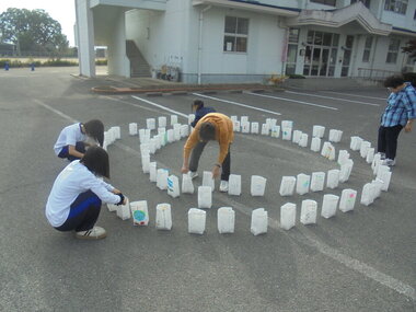 11月8日(土)の春日北小学校での紙灯ろうづくり&紙灯ろう並べには