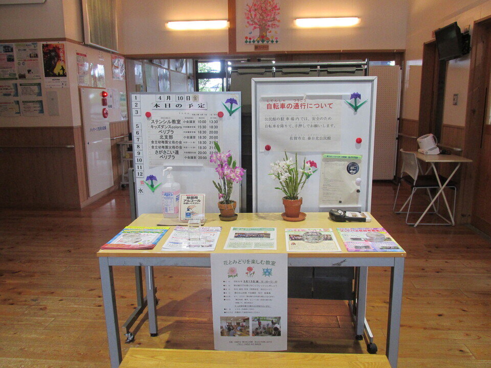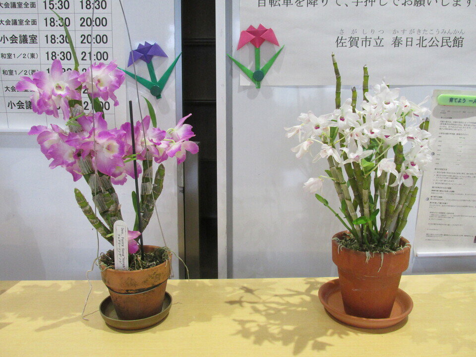 サブスクではありませんが、春日北公民館では、地域の方からご自宅で栽培されたお花を「飾らんね」と時々貸与いただいています。公民館の玄関ロビーを彩るお花、来館者の目も、鼻も楽しませていただき、嬉しい限りです。「あら、きれいかね。」と会話のきっかけになることもしばしばです。