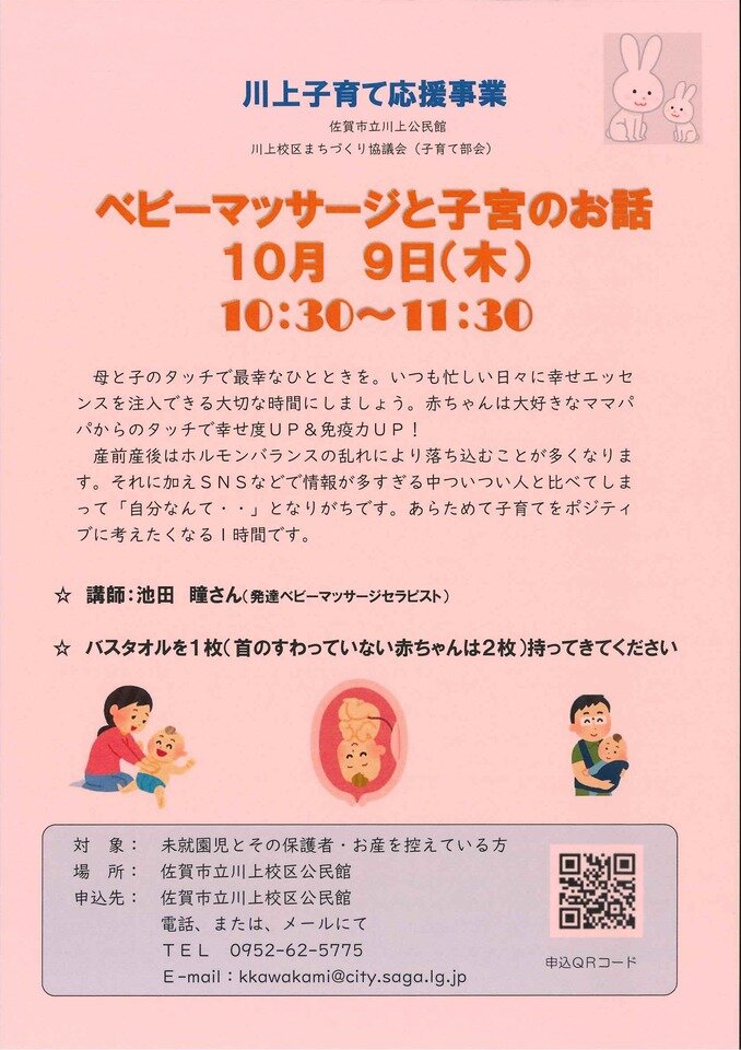 川上子育て応援事業「ベビーマッサージと子宮のお話」参加者募集