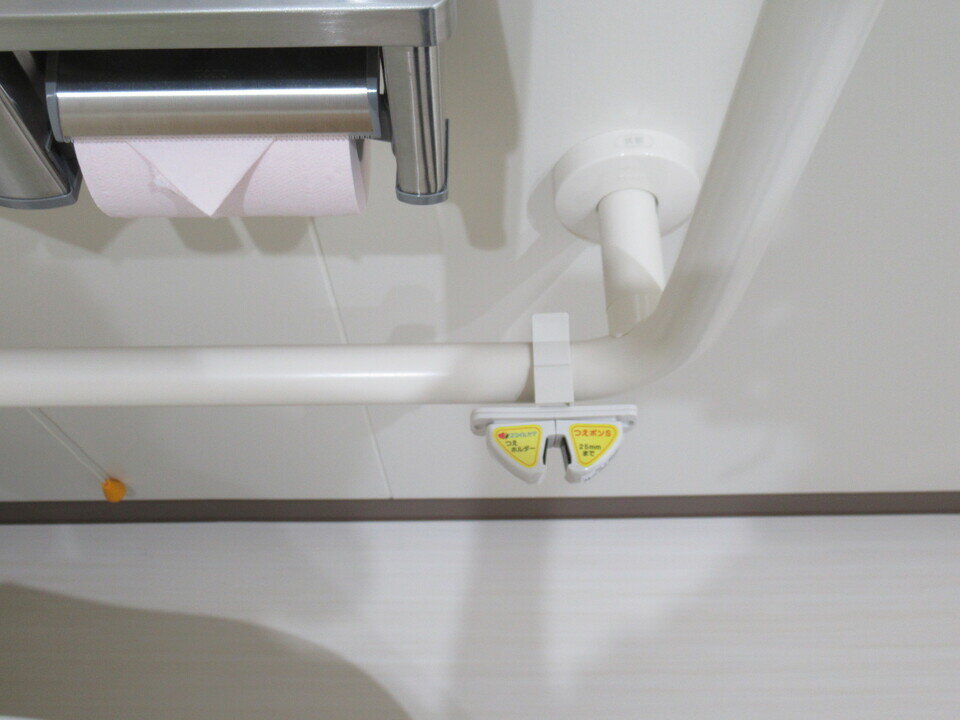 多目的トイレに杖置きを設置