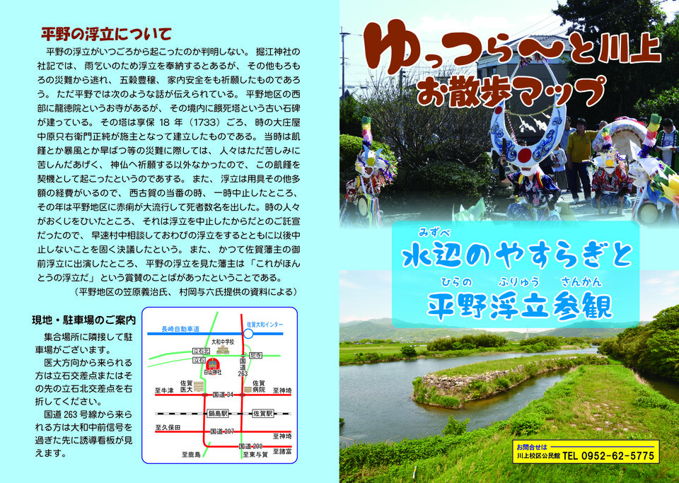 今年度第1回目のフットパスを開催します。暑さも和らぎフットパス日和となりました。今回のメインは「平野浮立」参観です。川上川の竹林、石井樋堰堤など水辺も歩きます。