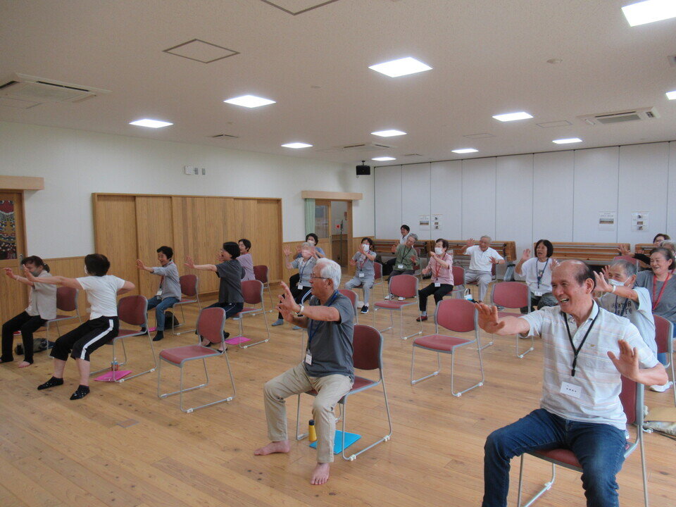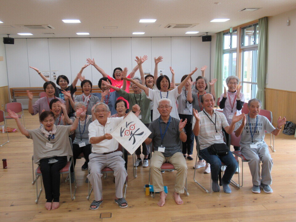 9月26日(金)、川上健康道場の5回目を開催、19名が参加し前半はいつものようにフィジカルトレーニングコーチの尾川さんの指導でストレッチと筋力維持のためのプログラムを行いました。後半は中町美佐子さん(日本笑いヨガ協会認定笑いヨガリーダー)をお迎えし、笑いヨガを体験しました。大きな声で「ワハハハ」と笑いながら体を動かしていると体がポカポカしてきてだんだん楽しくポジティブな気持ちになってくる気がします。楽しいから笑うではなく、笑っていると楽しくなってくる、という感覚です。昔から「笑う門には福来る」と言いますし、笑うことにお金はかかりませんし、みなさんももっと笑って日々過ごしていきましょう!
