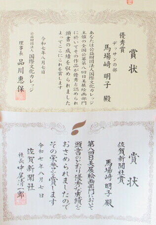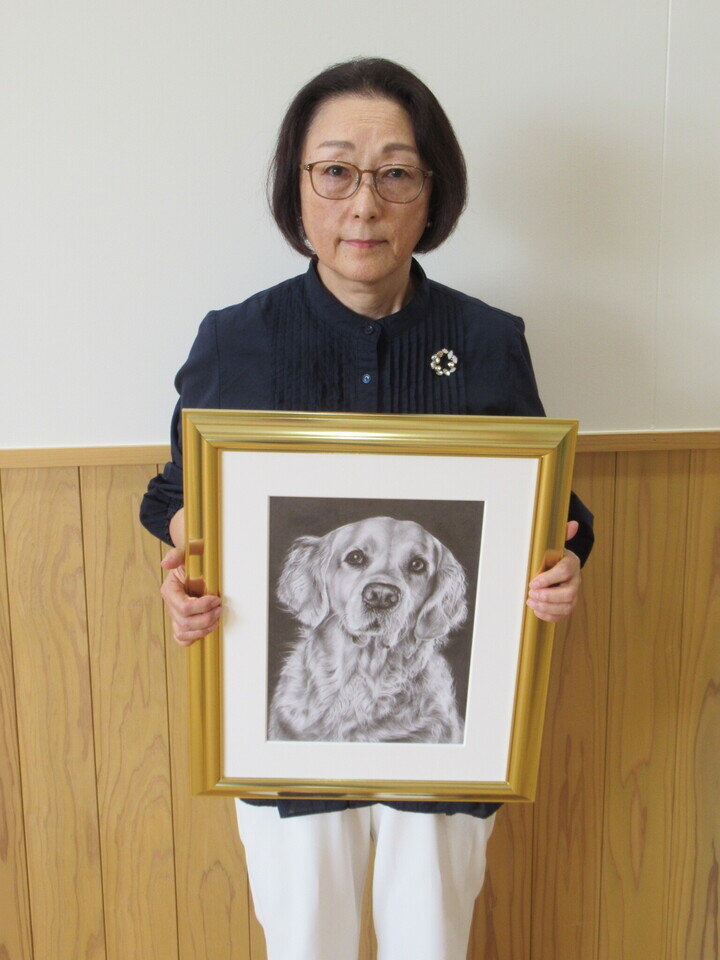 公益財団法人国際文化カレッジ主催の全国公募第八回日美展絵画部門(デッサンの部)に於いて、川上校区在住の馬場﨑明子さんの作品「愛しのゴールデンレトリバー」が優秀賞に選ばれました。また、同時にその栄誉を称える佐賀新聞社賞を受賞されました。馬場﨑明子さんは、これまで二科展デザイン部大賞ほか受賞歴多数をお持ちの鉛筆画家で、川上校区公民館で第1・第3木曜日に趣味の世界を作る色鉛筆画サークルの指導にあたっておられます。【受賞日 令和7年8月7日(木)取材日10月2日(木)】
