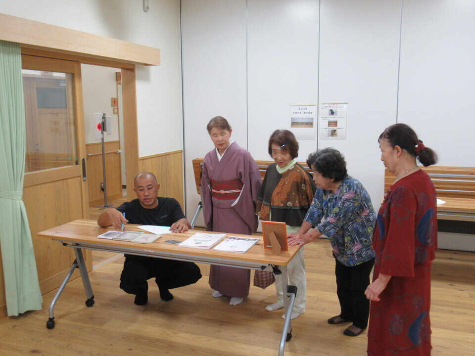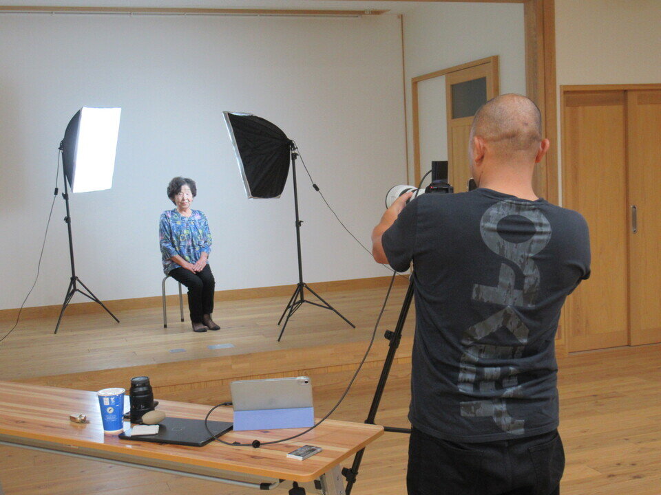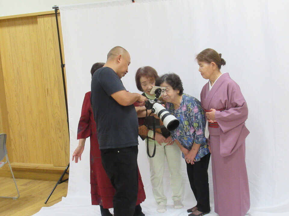 10月7日と21日の二日間にわたって「公民館写真館」(共催:川上校区社会福祉協議会、川上公民館)をおこないました。この事業は80歳以上の方を対象にちょっとおめかしした写真をプロのカメラマンに撮ってもらい記念に残すというもので、事前に申し込みをした16名が公民館の特設スタジオで写真撮影に臨みました。町内在住のカメラマン於保智広さんが、綺麗に映る体の向きや姿勢をアドバイスしながら、真面目な表情と自然で柔らかい表情を収めていきました。はじめは少し緊張した面持ちの参加者でしたが、於保さんとの会話で徐々にリラックスし、とてもいい表情が撮れていたようです。参加者からは「緊張も含めて楽しかった」「やっぱりスナップ写真とは違う」といった高評価の声が聞かれました。11月末頃にはフォトフレームに収めた1枚とデータ5点を保存したCDが参加者に届けられることになっています。