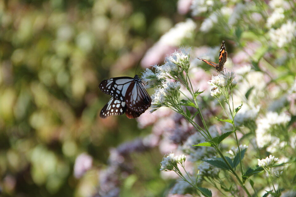 黒い縁取りに浅葱色が映える美しい模様の羽を持つアサギマダラは、日本列島から南西諸島や台湾を移動する「渡り蝶」です。春から夏にかけては北上、秋にかけては南下し、その移動距離は1000㎞を超えるそうです。