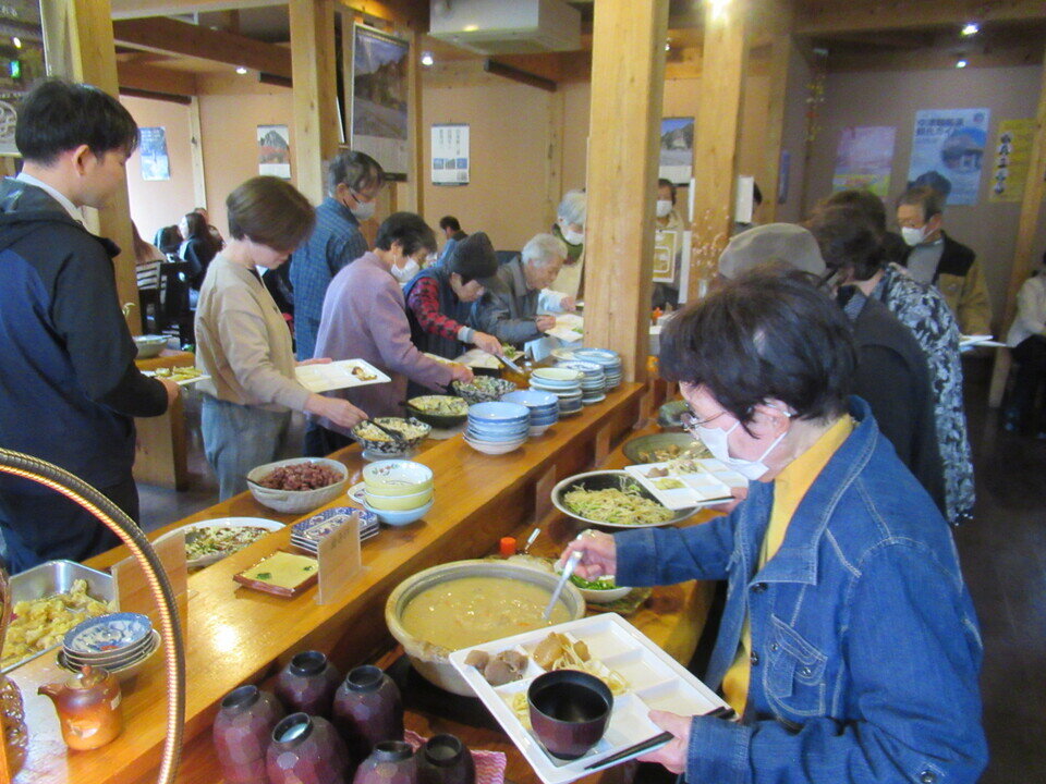 川上校区内の75歳以上の一人暮らしの方や役員他総勢26名で紅葉が一番の見頃の耶馬渓へ行ってきました。皆さん楽しみにされていたようで集合時間10分前に全員揃って出発しました。お昼は、地産地消をコンセプトにした料理をビュッフェスタイルでいただける「農家レストラン洞門パティオ」でランチバイキングを楽しみました。たくさんの種類の料理やデザートを食べることができご満悦でした。