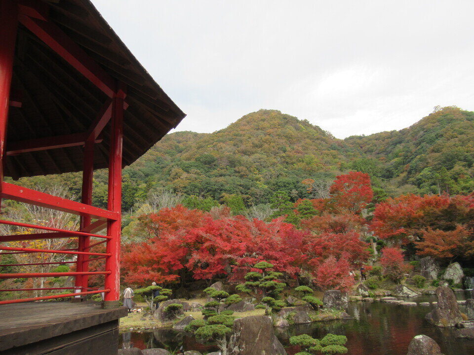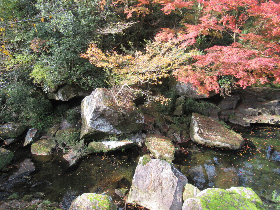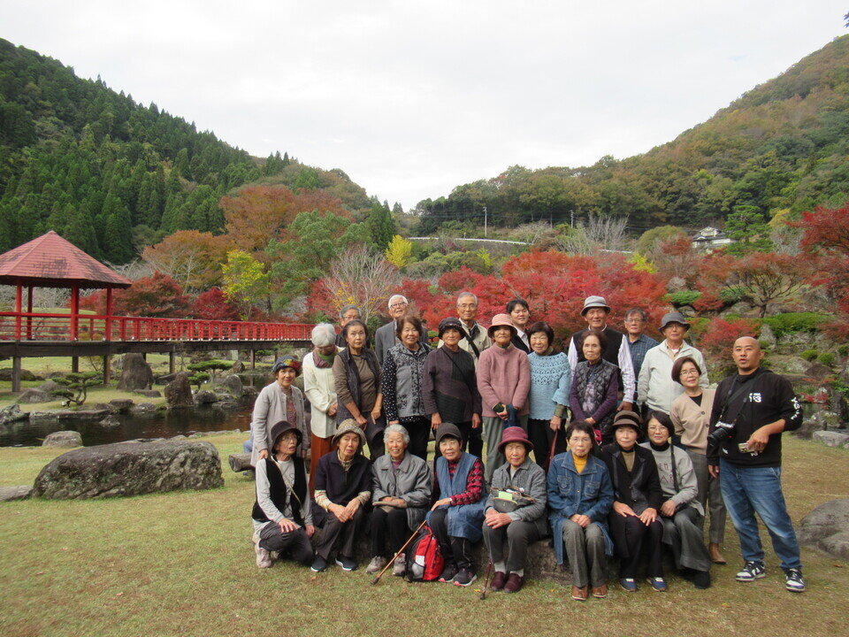 耶馬渓ダム完成を記念してつくられた日本庭園「渓石園」や八つの景色が一目で眺められる「一目八景(ひとめはっけい)」、青の洞門、御霊神社の紅葉を楽しみました。バスの中は、始終楽し気な話し声と笑い声に包まれていました。