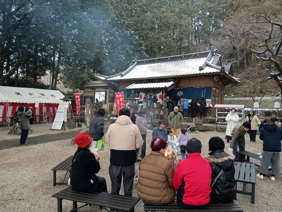男女神社初詣の様子