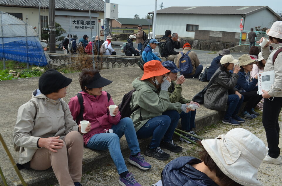 大願寺公民館をお借りして熱いお茶と白玉まんじゅうでひと休み
