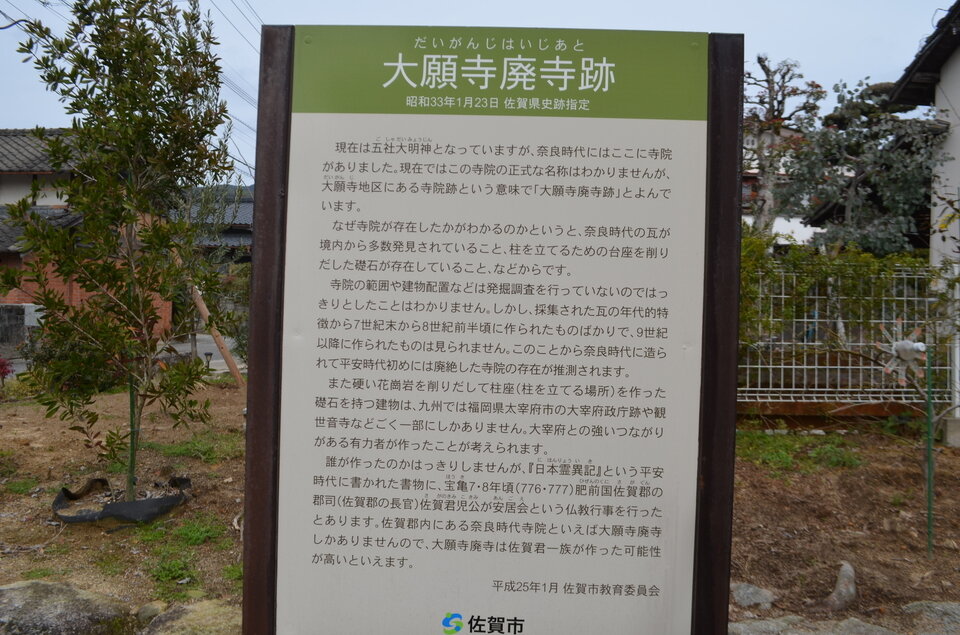 大願寺廃寺跡、現在五社神社が建っているこの地に奈良時代には大伽藍を持つ「万年山大願寺」というお寺があったそうです。「大願寺」という集落の地名はその名残でしょうか