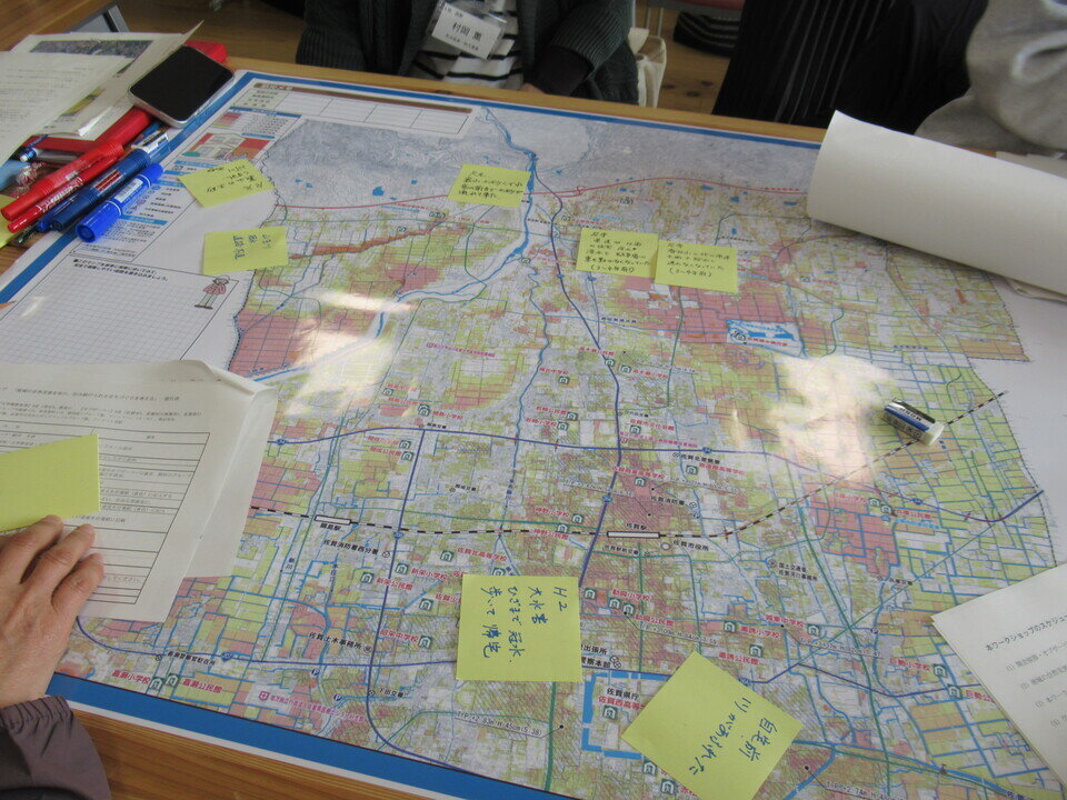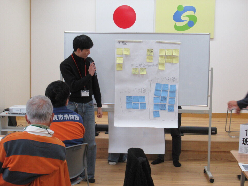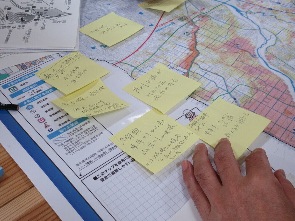 持ち寄った情報をもとに整理を行い、具体的な防災の手立てや今後の取り組むべき対策について提案をまとめました。