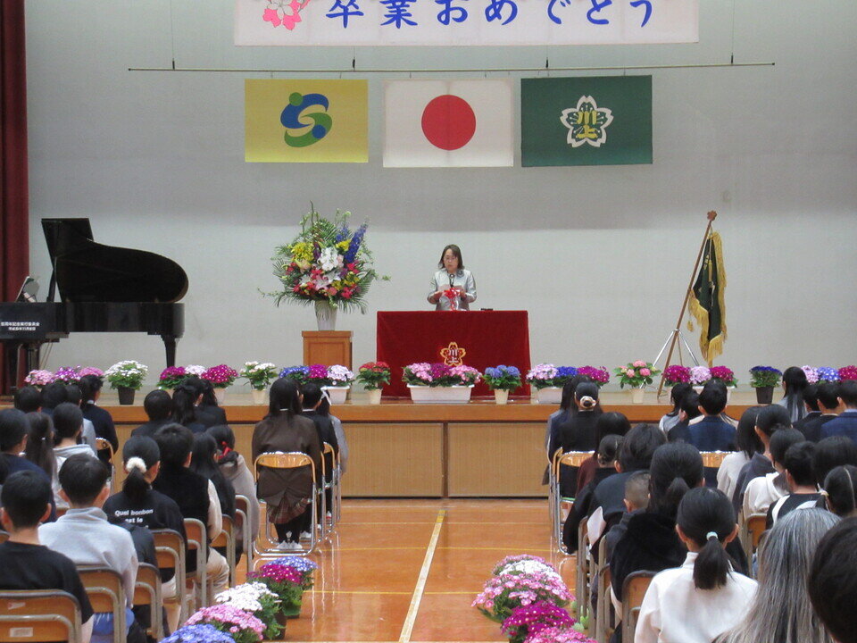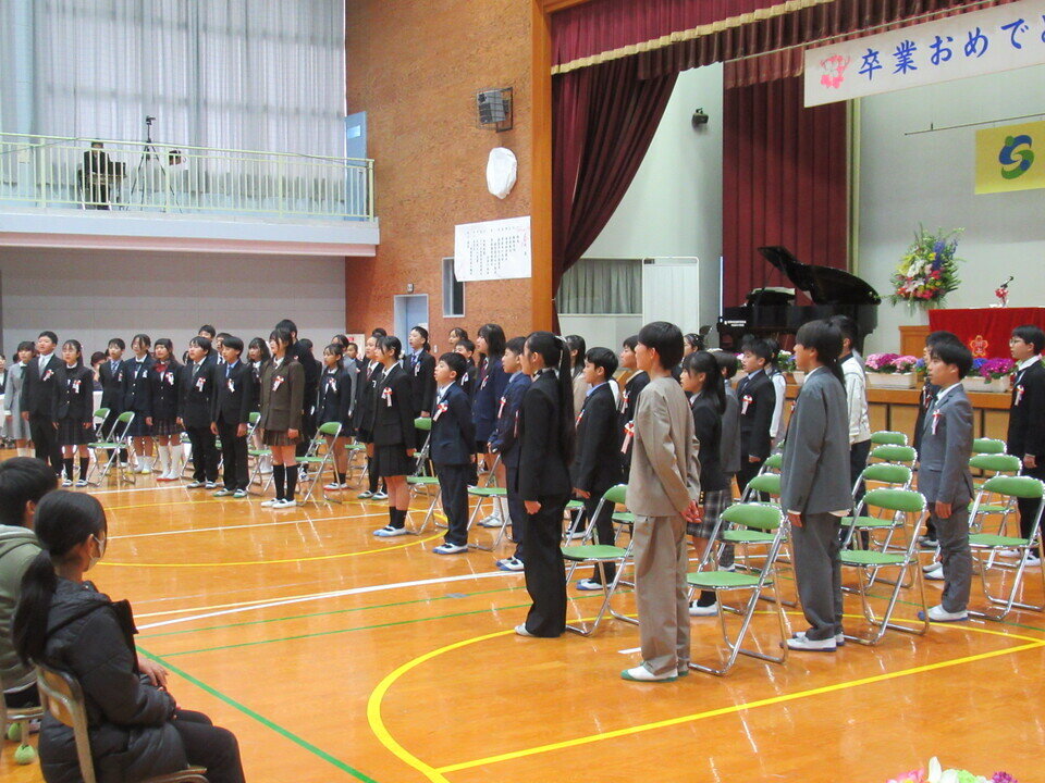 3月13日(金)川上小学校で卒業証書授与式が行われ、来賓として出席させていただきました。53名の児童が卒業しました。入学から6年間、地域の見守り活動や行事の中で成長してきた子どもたちが、立派に巣立つ姿はとても頼もしく感じられました。これから中学生として新しい生活が始まります。地域一同、卒業生の皆さんのさらなる成長と活躍を心より願っています。