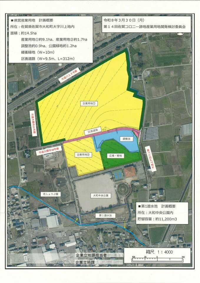 佐賀コロニー跡地の産業用地開発については、川上校区において検討委員会(委員16名)を設置し、令和2年6月より令和8年3月までの間14回にわたり、県および市の関係部署と検討と議論を重ねてまいりました。このたび無事に造成工事が完成の運びとなり、今後産業用地が地域の発展と活性化に寄与し、より良いまちづくりにつながることを期待されています。また、検討委員会代表の辻日出生様のこれまでのご尽力に深く感謝申し上げたいと思います。