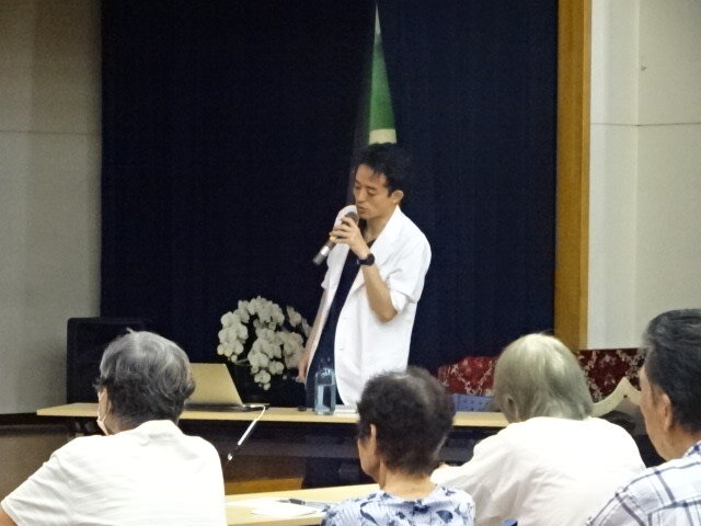 股関節の痛みは主に変形性股関節症について、膝関節の痛みは主に変形性膝関節症についてお話いただきました。痛みの治療の段階は①病気の理解・運動→②物理療法(リハビリ)→③装具・投薬・注射等→④手術となり、ご自身とご家族のために、痛みがあれば放置せず適切な治療を受けて下さいとのことでした。