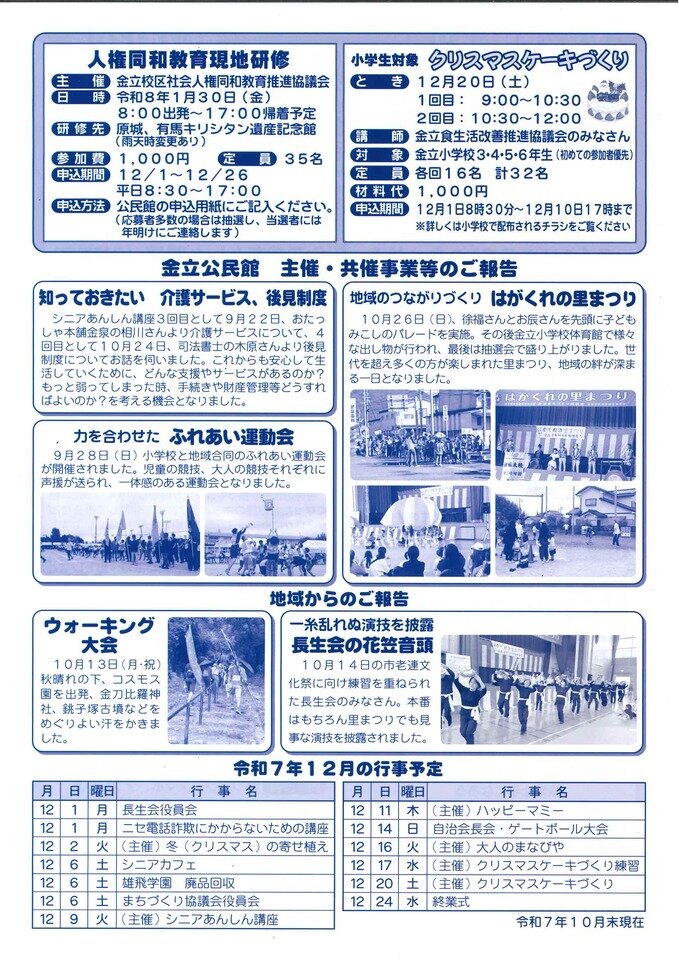 令和7年12月の行事予定