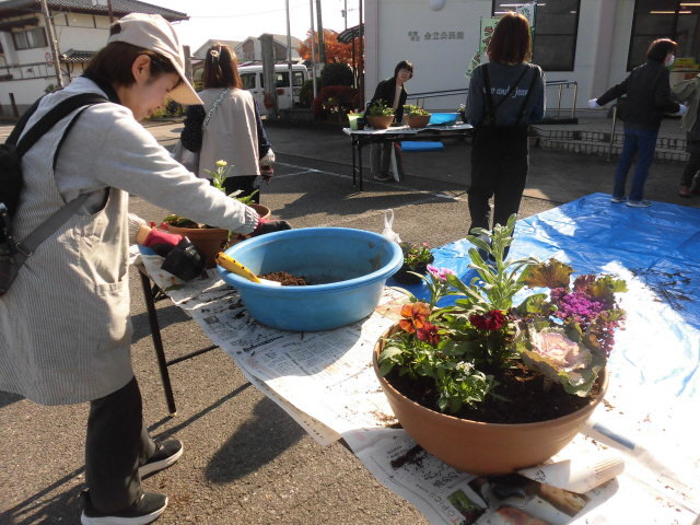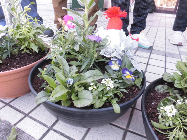 講話で学んだことを思い出しながらみなさん土入れをし、花を選んで、寄せ植えを完成させていました。![]()