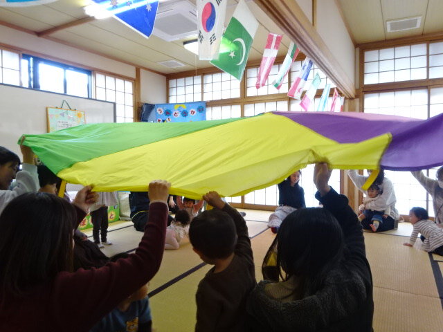 いつも大会議室で運動会を開催していますが、和室でしてみました。