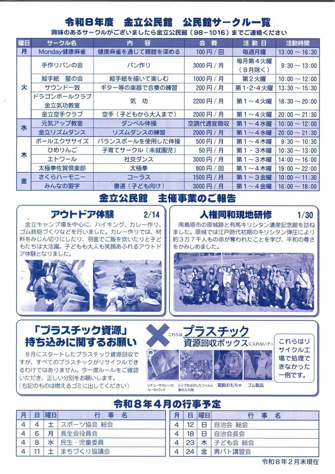 令和8年度 金立公民館 公民館サークル一覧