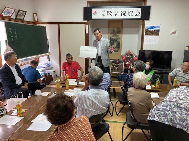 自治会が主催する「敬老会」が復活の兆しを見せています。校区自治会長会が実施状況を調査したところ、今年は30自治会のうち約3分の1の9自治会が敬老会を実施しました。3,4年ぶりに再会した町区では参加者の健康状態チェックや会場での会食を止めるなど、感染リスクを小さくする工夫も見られました。 新型コロナ禍前は「敬老の日」のお祝いとして定着していた敬老会ですが、令和2年にコロナ感染が深刻になって以降、大半の町区で祝賀会は開かず記念品の配布へと切り替わりました。記念品は2千円~3千円のお菓子やインスタント食品、日用品などが多いようです。 それから3年。今年は国が「感染拡大防止」最優先から「経済活動再開」へと舵を切ったこともあり、さまざまな恒例行事、イベントが再開されています。敬老会復活もこうした流れを受けたものです。 敬老会を復活させた自治会では「お年寄りが楽しみにしていたし、体温計測やマスク着用など感染防止には細心の注意を払った」(枝吉団地)。「この機を逃せば記念品配布が定着し、お年寄りとの交流機会がますます減ってしまう」(新村)と、こちらは時間を短縮し会場での会食をやめるなどの対策をとっています。 ただ、重症化リスクが高い高齢者の催しには慎重論が根強く、今年も記念品配布が主流でした。「班長さんたちの意見も聞いた上での結論。コロナはなお収まってはいないし、季節外れのインフルエンザも流行している。こちろん、事態が収まったら再開する」(枝吉) コロナとの闘いはまだまだ続きます。「ウイズコロナ」という新たな状況下で、どんな「敬老」の形が望ましいのか、それぞれの地域でしっかり議論する必要がありそうです。(広報委・宮崎俊一) ![]()