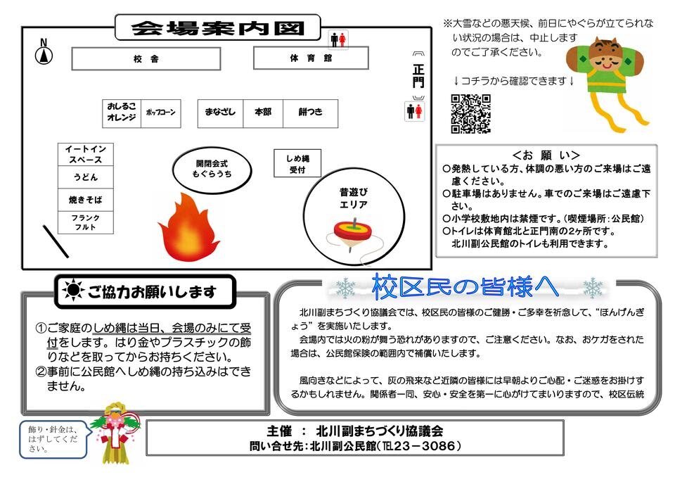 日時:令和8年1月11日(日)8:00点火場所:北川副小学校 運動場
