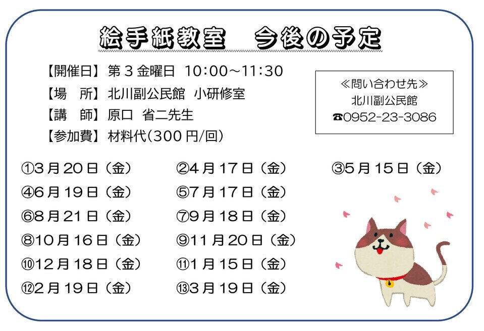 今後は毎月第3金曜日の10時から開催しますので、興味がある方は公民館まで連絡をください。