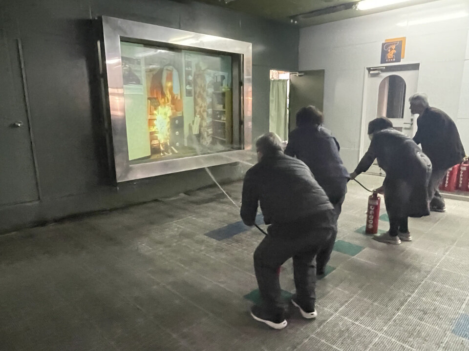 火災の際、煙の迷路からの脱出を体験しました。煙には甘い匂いが付けられていましたが、それに気付くと、「有毒な煙を吸ったことになる」ということでNGとなります。