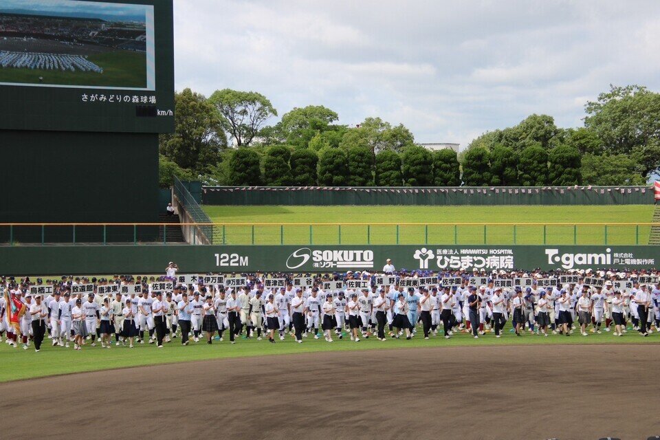 7月6日(土)、さがみどりの森球場ではお馴染みの入場曲が流れ、高校球児の祭典「第106回全国高等学校野球選手権佐賀大会」が開幕しました。佐賀県内の36校が聖地甲子園を目指して競い合います。