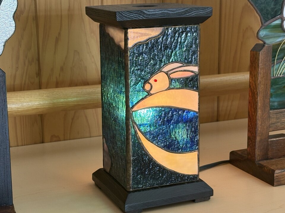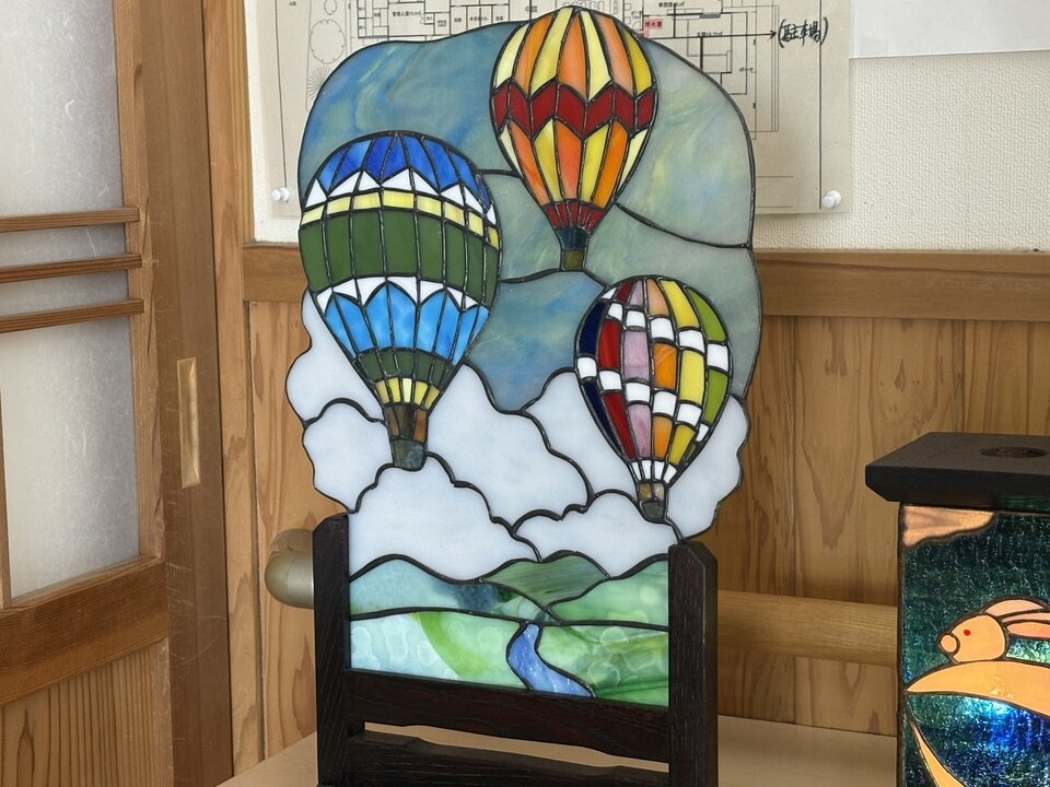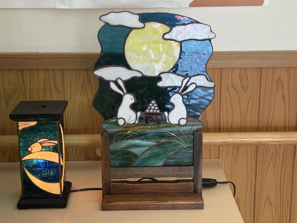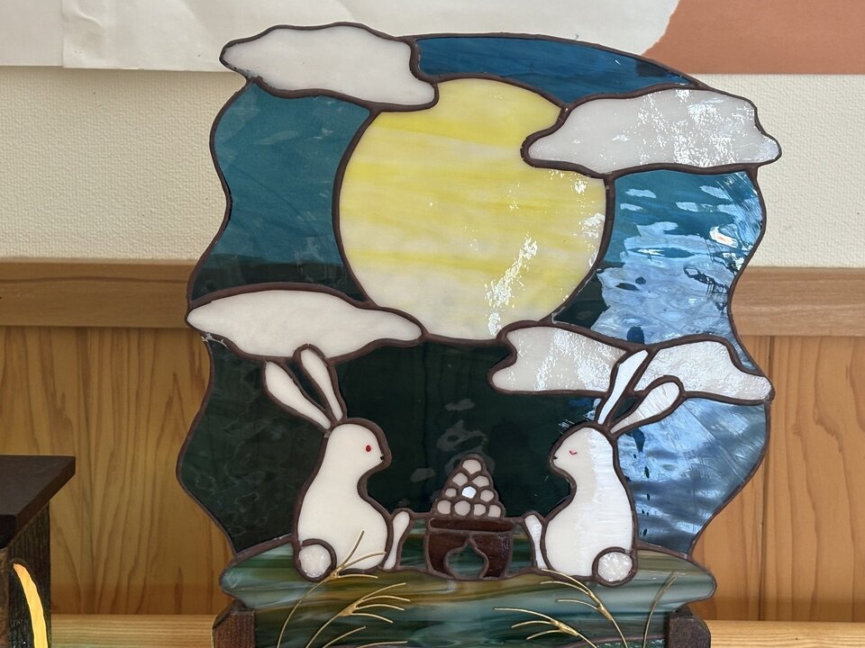 待望の新作が展示されました!神野公民館でおなじみM田さんのステンドグラスです。