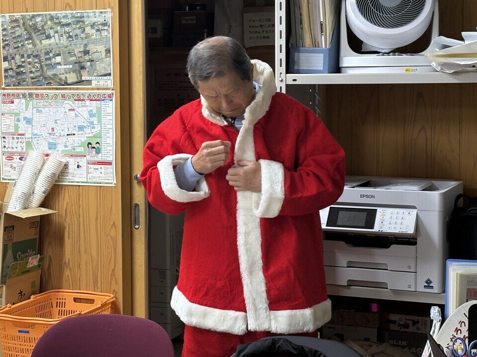 何か良からぬことを企ててるような様子のT原会長(サンタクロース)とN牟田自治会長。
