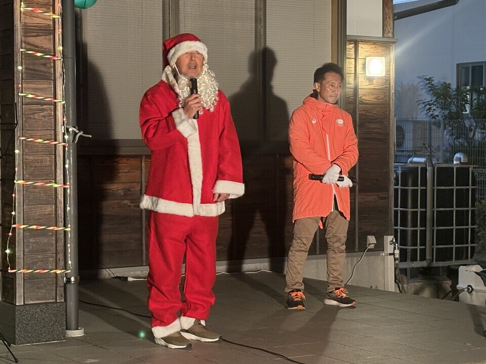 冒頭でサンタクロースに扮した、神野まちづくり協議会のT原会長がご挨拶~からのカウントダウン!