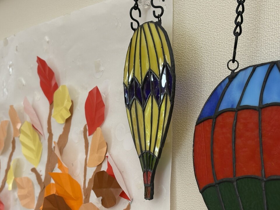 隣に見えるステンドグラスのバルーンは、もちろんM田さんの手作りです。
